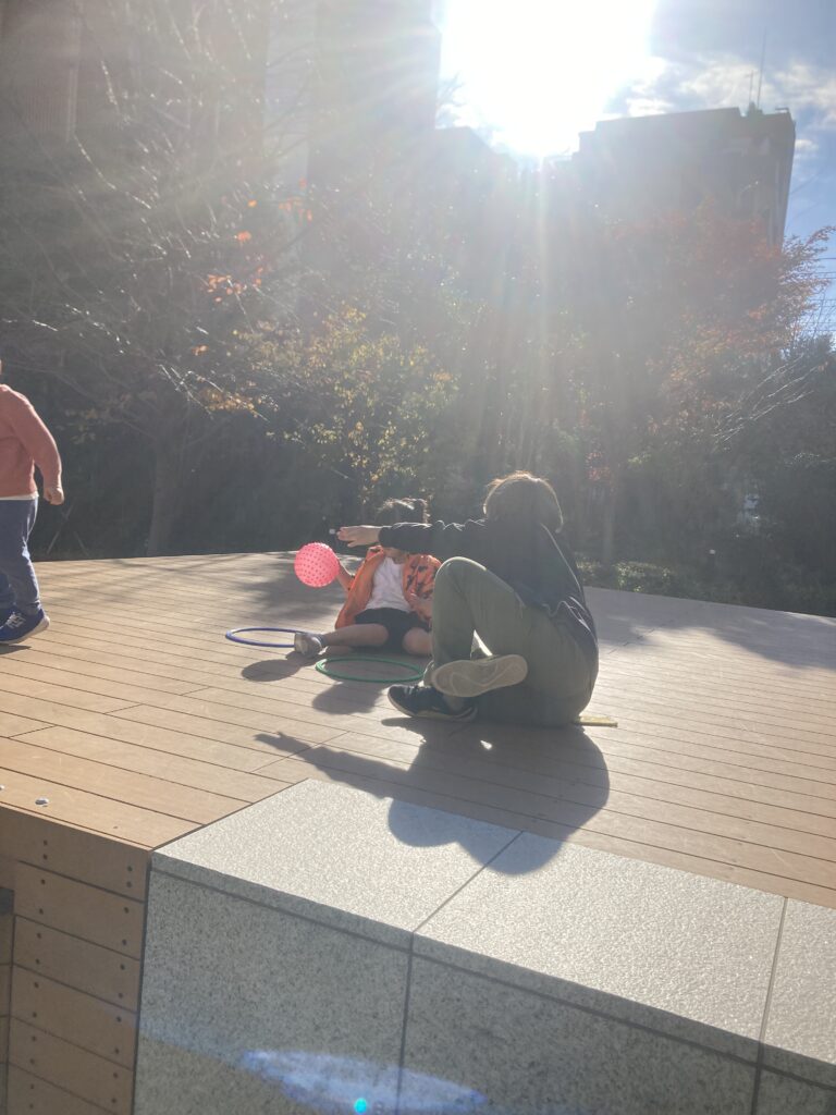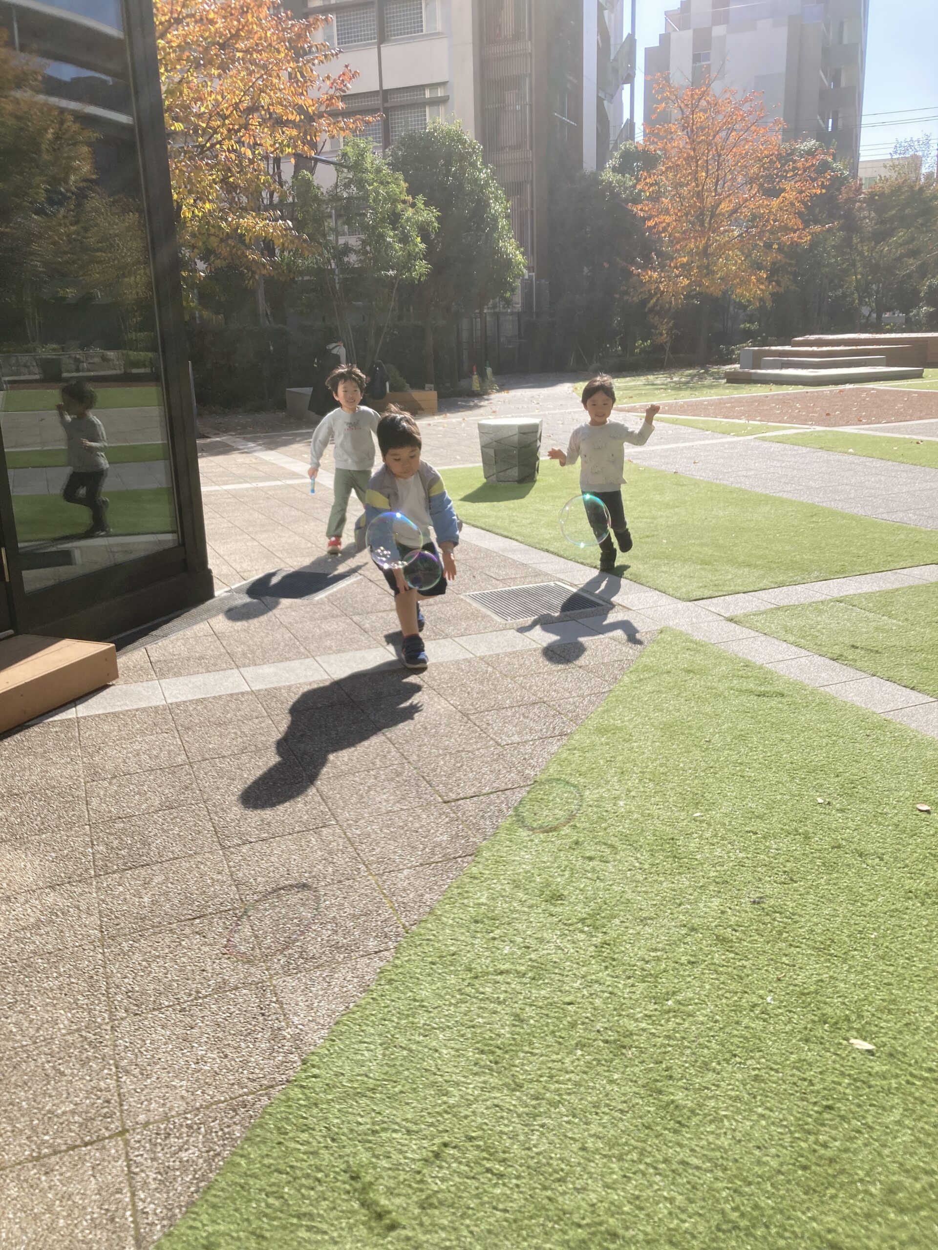 秋晴れ シャボン玉を追いかけて